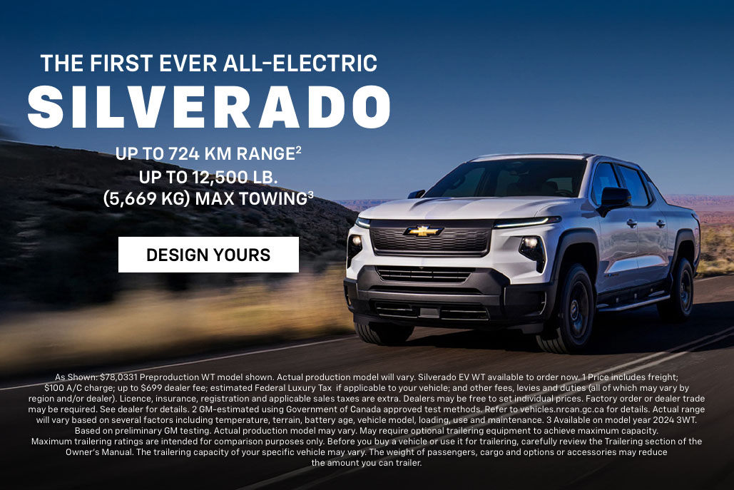 Offer available to qualified retail customers in Atlantic Canada on select new and previously unregistered 2026 MY Chevrolet Silverado 1500 Crew Cab models financed between March 3, 2026 to March 31, 2026. 0% purchase financing (0% APR) offered on approved credit by TD Auto Finance Services, Scotiabank® or RBC Royal Bank for 72 months. Participating lenders are subject to change. Rates from other lenders may vary. Down payment, trade and/or security deposit may be required. Monthly payment and cost of borrowing will vary depending on amount borrowed and down payment/trade. Representative finance example based on an eligible 2026 MY Chevrolet Silverado 1500 Custom Trail Boss Crew Cab model: $75,000 financed at 0% interest rate (0% APR) equals $1,041.67 monthly for 72 months with $0 down payment. Cost of borrowing is $0 for a total obligation of $75,000 Offer includes $2,700 freight; $100 A/C charge; $72 EHF (tires); PPSA registration (up to $165); up to $699 dealer administration fee; as well as all other applicable fees, levies and duties (all of which may vary by retailer). License, insurance, registration and applicable sales taxes are extra. Dealers are free to set individual prices. Dealer trade or factory order may be required. Limited time offer which may not be combined with certain other offers such as the $6,000 Non-Stackable Cash Delivery Allowance (Tax Exclusive) offered on cash purchases. General Motors of Canada Company may modify, extend or terminate offers for any reason, in whole or in part, at any time, without notice. Conditions and limitations apply. Void where prohibited. Chargeable paint costs may vary depending on the vehicle/colour. See dealer for full program details. ®Registered trademark of The Bank of Nova Scotia. RBC and Royal Bank are registered trademarks of Royal Bank of Canada. TD Auto Finance is a registered trademark of The Toronto-Dominion Bank.